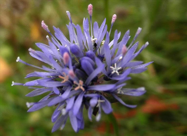 Bloemen - Tweeslachtig (een bloem met zowel mannelijke als vrouwelijke geslachtsorganen). De blauwe bloemhoofdjes zijn bolvormig en 1½ tot 2½ cm groot. Aan de voet van het hoofdje zit een vlak, bleekgroen omwindsel. De blaadjes van het omwindsel zijn korter dan de bloemen. De buitenste omwindselblaadjes zijn vaak ruitvormig en de binnenste langwerpig. De bloemen in het hoofdje zijn meestal duidelijk gesteeld en hebben priemvormige kelkslippen.
