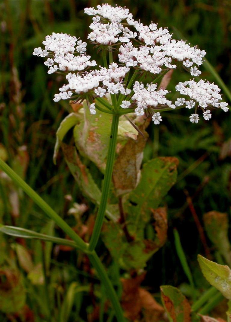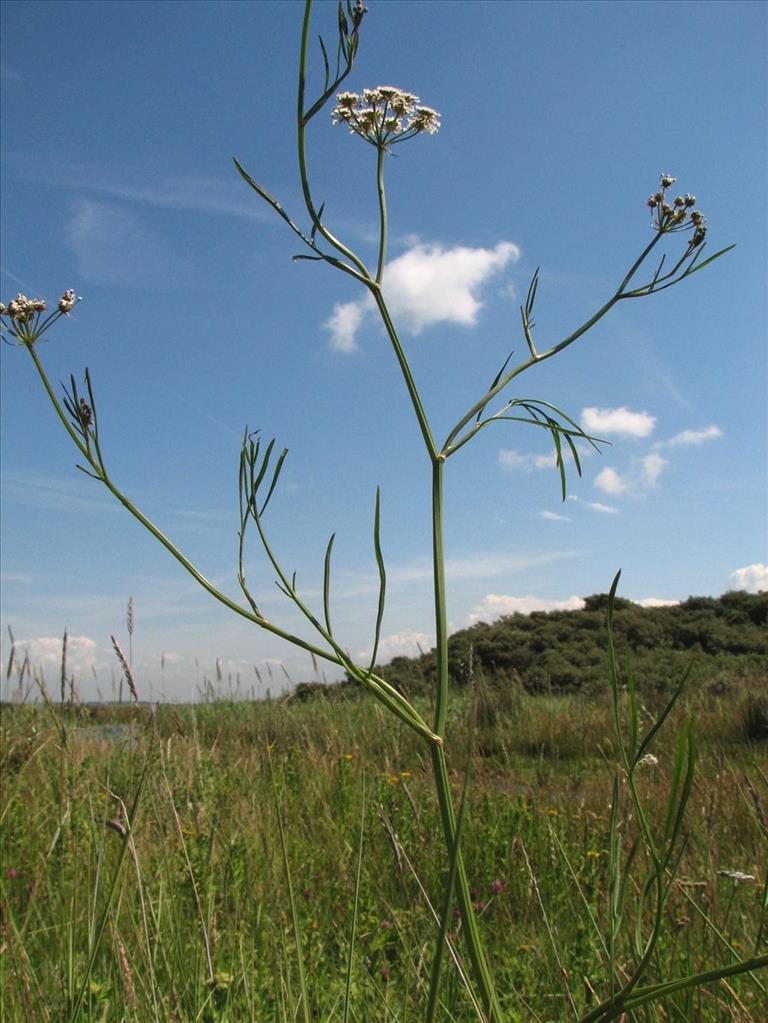 Bloemen - Tweeslachtig (een bloem met zowel mannelijke als vrouwelijke geslachtsorganen). De bloemschermen staan aan het eind van de stengel en bestaan uit 5 tot 15 stralen. Deze zijn niet verdikt na de bloei en bovenaan ook niet ingesnoerd. De bloemen zijn wit en 2 tot 3 mm groot. De kroonbladen zijn tot aan het midden 2-spletig. Het omwindsel is meerbladig, maar soms ontbreekt het.
