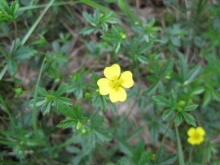 Bladeren - Meestal zijn de blaadjes 3-tallig, zelden 4 of 5-tallig. Ze zijn verspreid afstaand tot zijdeachtig behaard. De rozetbladeren zijn meestal al verwelkt voor de bloei. De stengelbladeren zijn niet of soms zeer kort gesteeld. De deelblaadjes zijn ruitvormig met de grootste breedte ongeveer in het midden en met vrij diepe, vaak iets toegespitste tanden. De steunblaadjes van de stengelbladeren zijn ruim half zo groot als de deelblaadjes en meestal handvormig ingesneden.