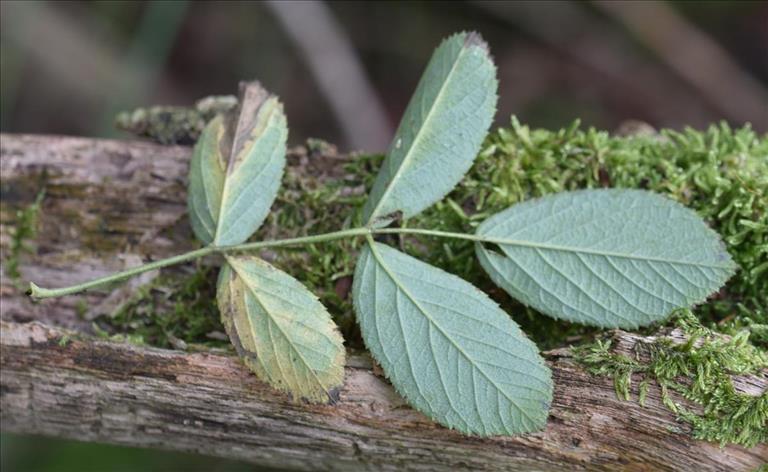 Bladeren - De bladeren zijn vijf- of zeventallig met vrij grote eivormige tot langwerpige dubbel gezaagde deelblaadjes. Aan de onderkant zitten gesteelde klieren. De steunblaadjes hebben toegespitste, naar de bladsteel teruggekromde oortjes.