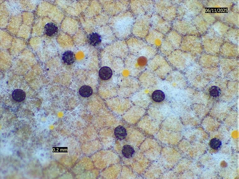 Chasmothecia onderzijde beukenblad, Nijenrode, Breukelen, © Eduard Osieck