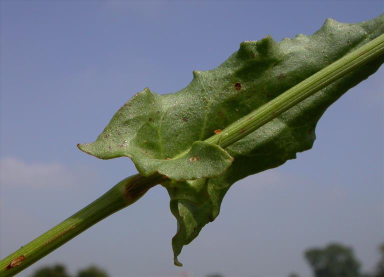 Bladeren - De smalle, langwerpige, soms wel tien keer zo lang als brede bladeren hebben een sterk gekroesde rand. De bladvoeten hebben oortjes, die vaak in twee of drie punten uitlopen.