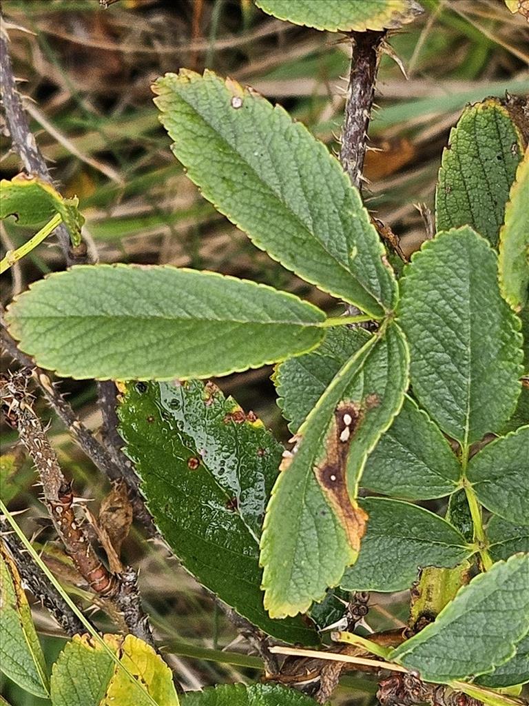 Rosa x praegeri (Hondsroos x Rimpelroos) lijkt op Rimpelroos (Rosa rugosa): een uitlopers makende roos met zeer fijne voornamelijk rechte stekels. De vorm, de nervatuur van de bladeren en de diep karmozijnrode bloemkleur zijn van moeder Rimpelroos, maar de kaalheid van de bladeren en de enkele iets gekromde stekels van de vader Hondroos (Rosa canina). In tegenstelling tot Rimpelroos kan een deel van de kelkbladen geveerd zijn en zijn de kroonbladen iets smaller. De bladen zijn kaal of behaard, vooral op de nerven aan de onderzijde van het blad. Rosa x praegeri is recent voor het eerst in Nederland ontdekt in het Noordhollands Duinreservaat.