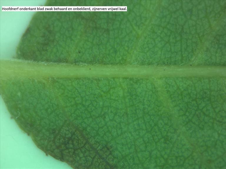 Hoofdnerf onderkant blaadje zonder klieren en behaard, zijnerven vrijwel kaal, Maastricht Sint Pietersberg, © Jan Klinckenberg