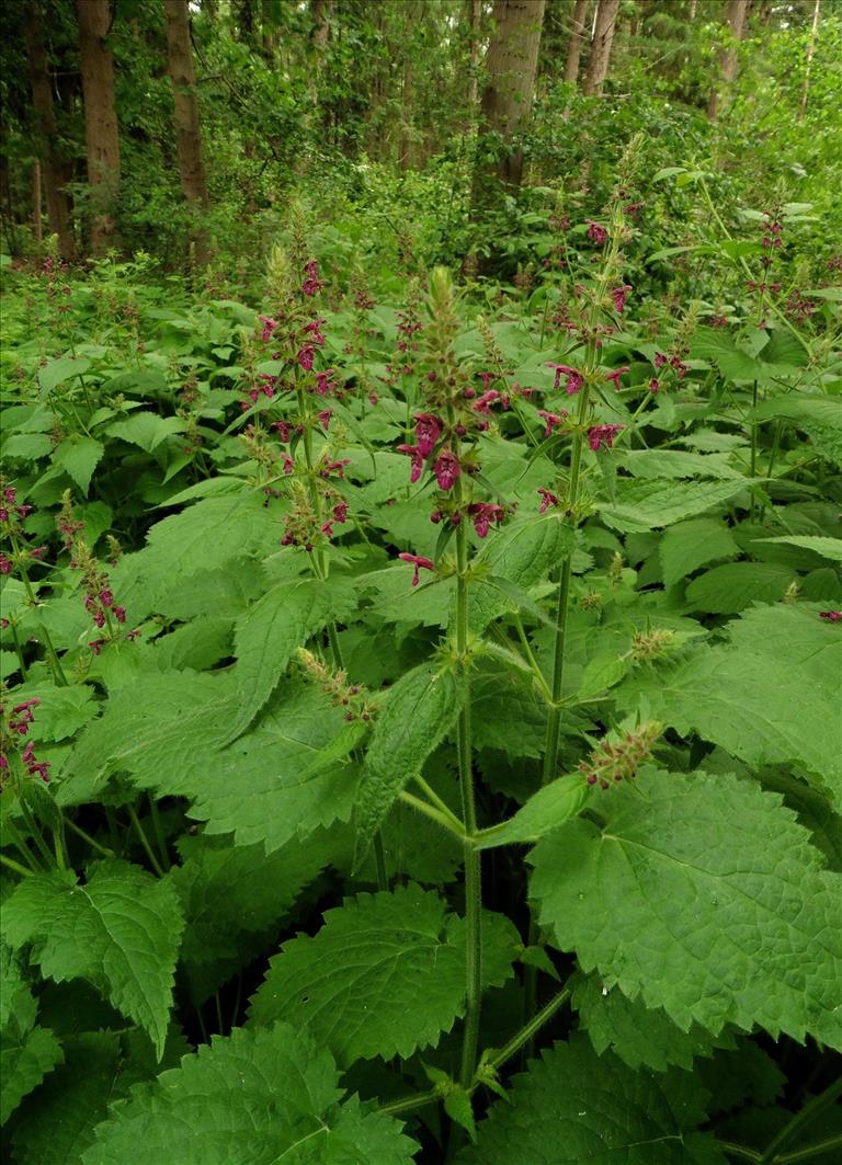 Bloemen - Tweeslachtig (een bloem met zowel mannelijke als vrouwelijke geslachtsorganen). De bloemen vormen schijnkransen met meestal zes bloemen. Ze zijn donker-paarsrood met witte vlekken en 1,2-1,8 cm. De onderlip is bijna twee keer zo lang en heeft een honingmerk. De dicht behaarde kelk is 4-7 mm.