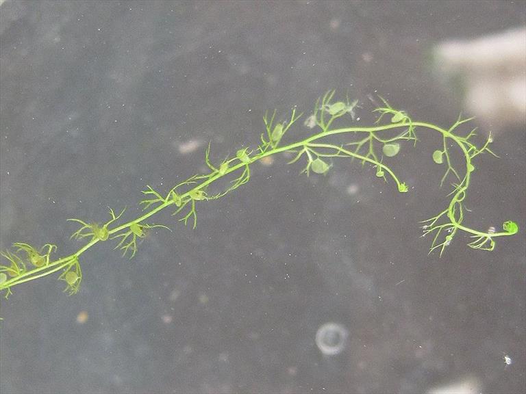 Stengels/takken - De horizontale hoofdas is lichtgroen. Aan de hoofdas groeien bleke, vrijwel bladgroenloze zijstengeltjes, die schuin naar beneden groeien en de plant vaak min of meer in de bodem vast zetten. Deze grondstengels hebben blaasjes. De blaasjes zijn ongeveer 2 mm. De draaddunne bloeistengeltjes worden gemiddeld ongeveer 10 cm.