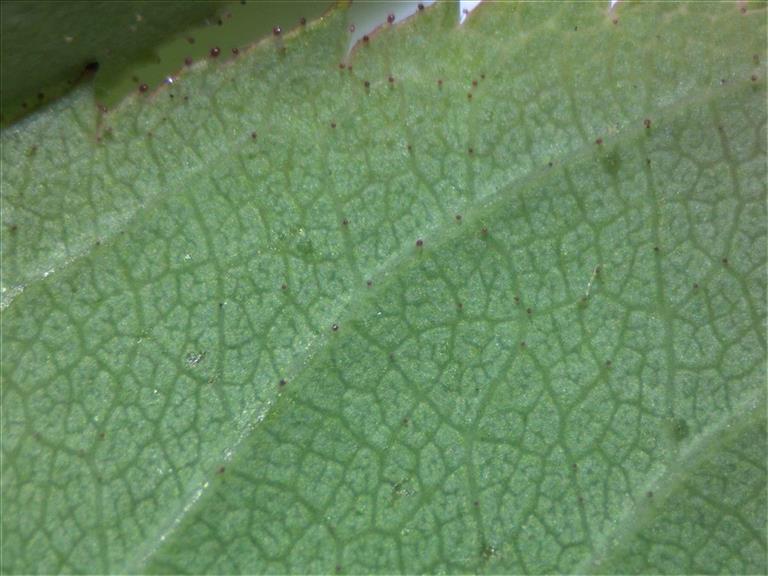 Onderkant blad op zijnerven bezet met rode klieren, Midden-Limburg, Wessem, Koeweide, © Jan Klinckenberg