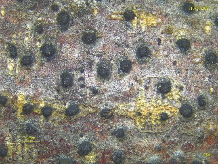 Uitgeworpen hoopjes conidia op dode tak Kaukasische vleugelnoot, Haarzuilens, © Eduard Osieck