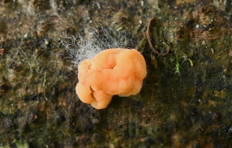 Tetragoniomyces uliginosus onderzocht door Riet van Oosten gevonden op Populier tak , Haarlemmermeer -Meerbos, © Laurens van der Linde