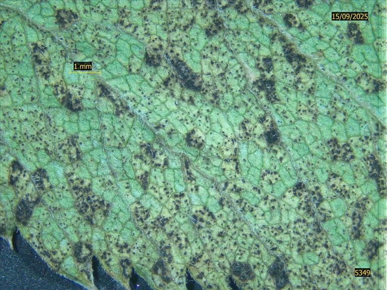 Groeiwijze op onderzijde blad Gewone engelwortel (vondst Jurgen Nieuwkoop), Jantjesplaat, Biesbosch, © Eduard Osieck