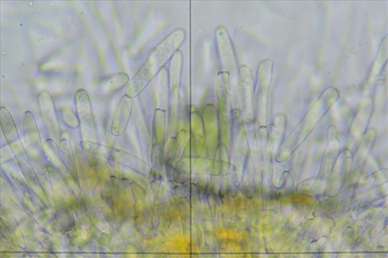 Conidia (opname met fase-contrast) op uredinia van de Algemene oranje roest (Coleosporium tussilaginis), Driebergen , © Eduard Osieck