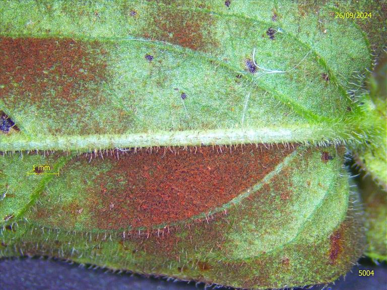 Bruine conidia op onderzijde blad Kattenstaart (ref. 5004), Nieuw Wulven, © Eduard Osieck