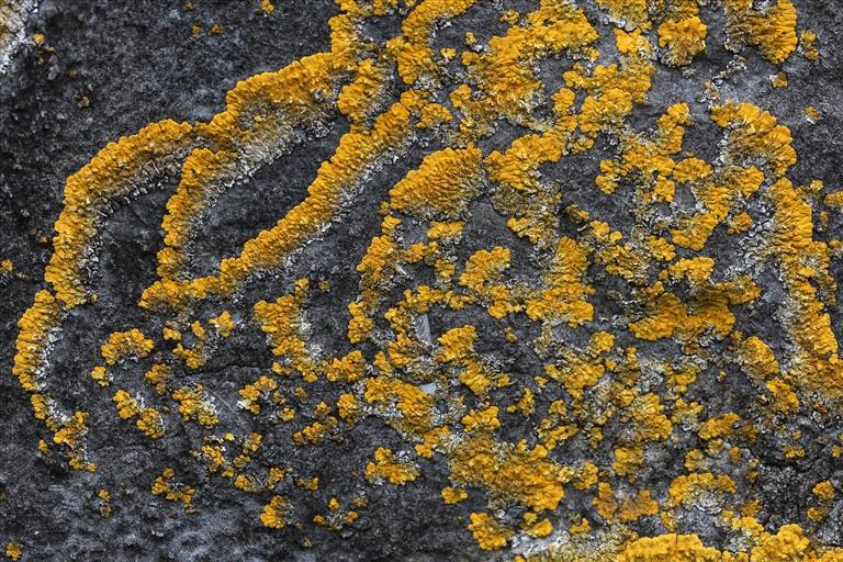 Op verticale kalkstenen grafzerk. Deels afgestorven thalli, Joodse Begraafplaats, Muiderberg, © Arjan de Groot