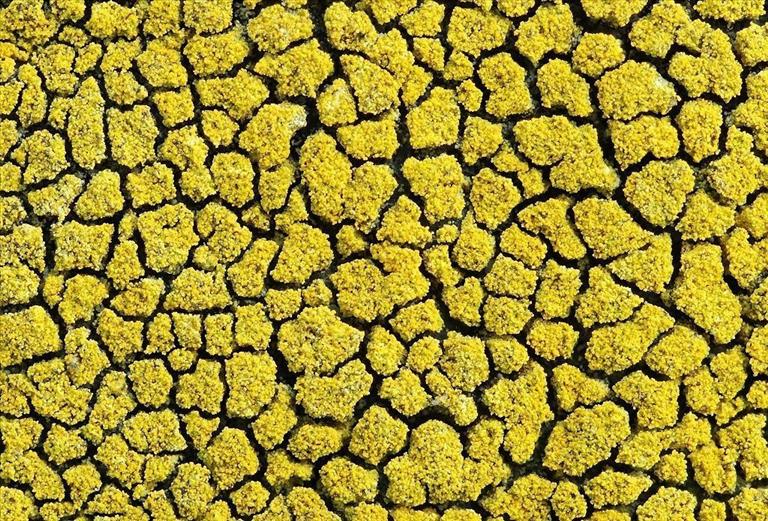 Gele, korstvormige, geheel poederig soredieuze soort op verticale, neutrale tot basische oppervlakken, zoals muren en de droge zijde van populieren en iepen. Oranje apotheciën met deels soredieuze rand zijn regelmatig aanwezig. De soort wordt wel verward met Flavoplaca flavocitrina, die deels uit gladde schubjes bestaat en een voorkeur heeft voor horizontale oppervlakken, zoals stoeptegels en bovenkanten en schuin-aflopende randen van muren. Reactie: K+ paars.