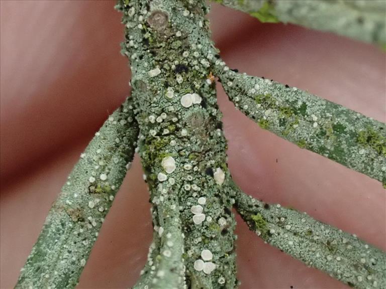 Thallus met apotheciën op dikke tak van Taxus, Groningen, Stadspark, © Lukas Verboom