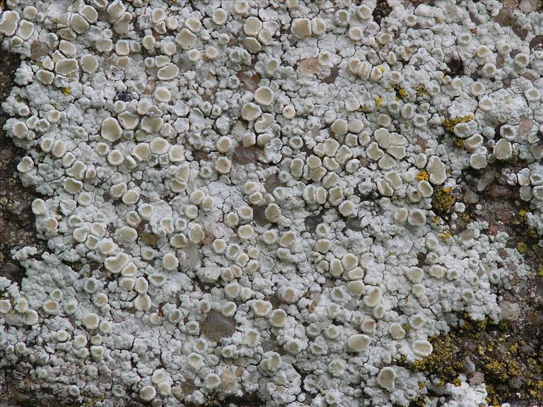 Op betonnen gebouw. Jong thallus, bestaande uit placodioide areolen, Over-Diemen, © Arjan de Groot
