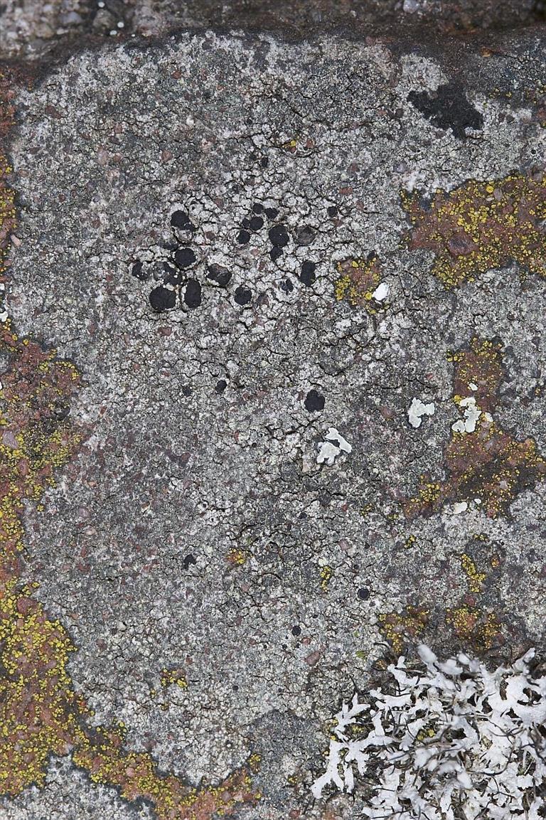 Grijsgroene korstvormige soort op kalkarm gesteente. Thallus dun, grijs, met lichtgroene soredieuze plekken die samenvloeien waarna het gehele thallus soredieus wordt. Apotheciën regelmatig aanwezig op weinig soredieuze exemplaren, zwart met zwarte rand. Een van de algemeenste soorten op oude baksteenmuren, graniet en basalt. Op zulke plekken groeit vaak ook Porpidia soredizodes, die blauwgrijs van kleur is, vaak met roestbruine vlekken en uitgeholde sorediën heeft. Reactie: C+ oranje.