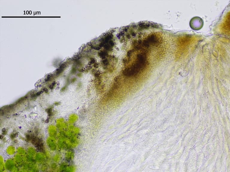 Detail opening van het perithecium en het thalluslaagje ernaast, Bruinisse, © Lukas Verboom