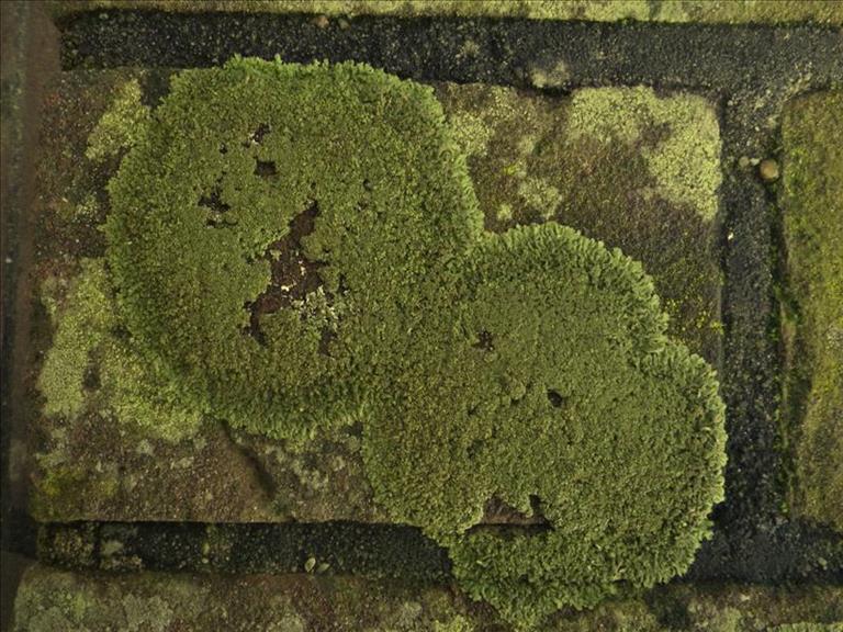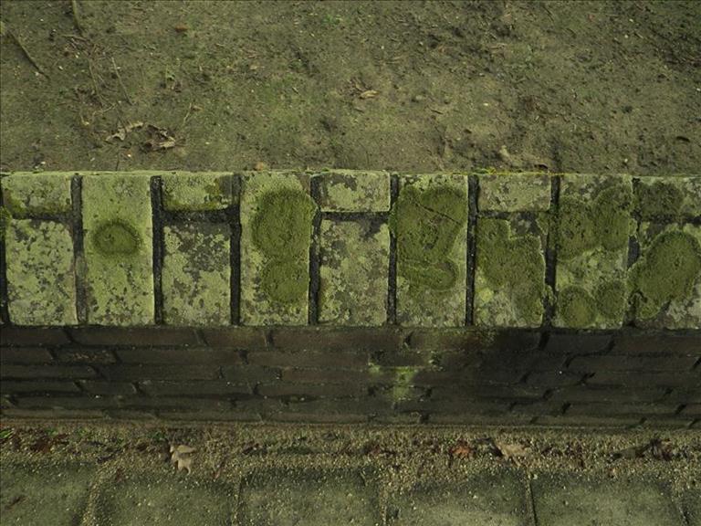 Op bakstenen muur, (onbekend), © Arie van den Bremer
