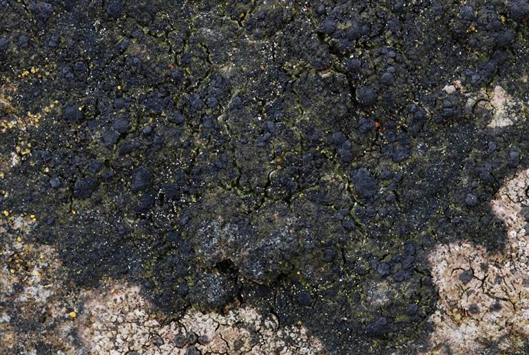 Op graniet van oude zeedijk tussen grove geelkorst (Candelariella vitellina), Nijkerk, Zeedijk, © Henk-Jan van der Kolk