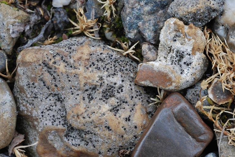 Close-up van thallus met apotheciën op kiezelsteen in heide, Wolfheze, 't Schild, © Henk-Jan van der Kolk