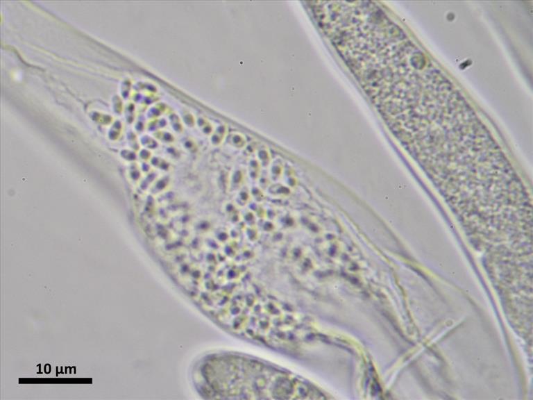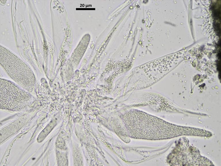 Detail van ascus met minuscule ascosporen, Weiwerd, © Henk-Jan van der Kolk