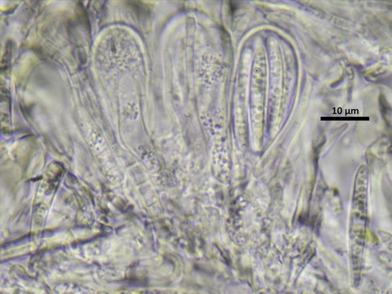 Ascus met ascosporen. Op tak van berk, Renkum, golfbaan, © Henk-Jan van der Kolk