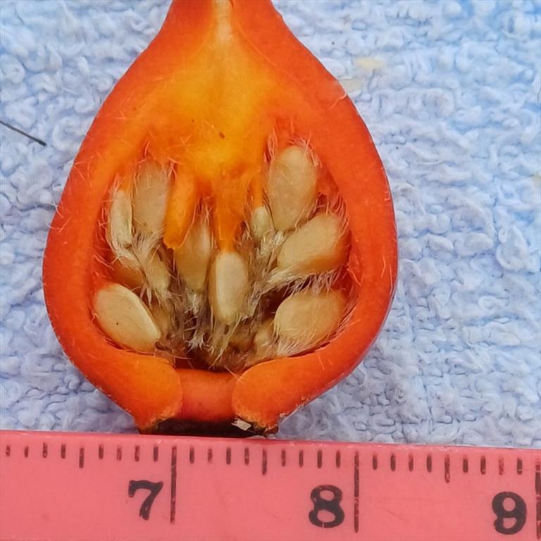 Vruchten - De stijlen zijn van het hoedtype. De bottels zijn groot (lengte 18-23 mm, doorsnede 14-15 mm, bottelsteel 7-10 mm) en hebben een stijlopening met een doorsnede van 1,4 tot 2,5 mm. De kelkbladen staan recht omhoog en zijn langblijvend.