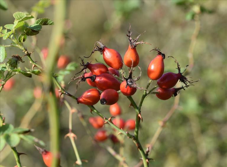 Stengels/takken - Met stevige, gebogen stekels en rechte, priemvormige stekels.