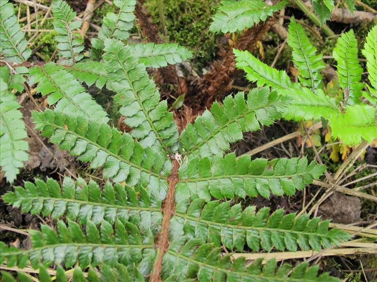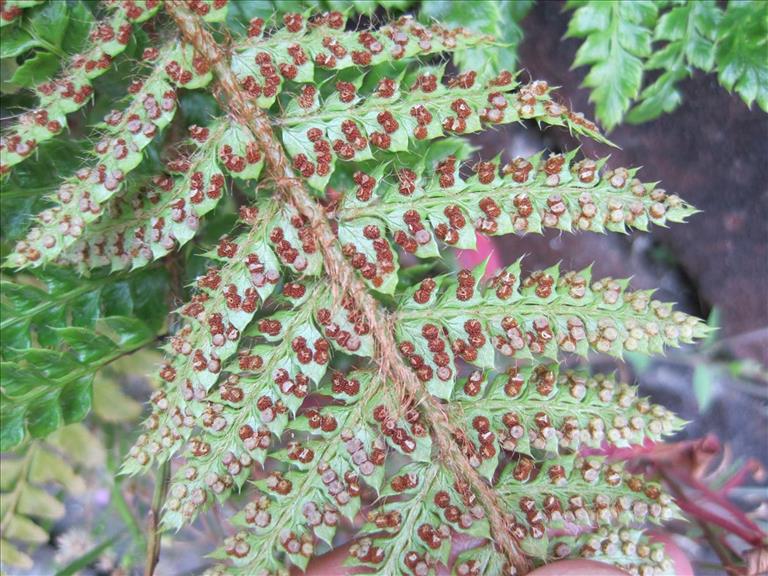 Polystichum polyblepharum, bekend als Glansschildvaren, is inheems in Japan en Zuid-Korea. Het is een wintergroene varen, die vorst kan verdragen, mits er voldoende beschutting is. Glansschildvaren is een populaire tuinplant; met de decoratieve bladeren worden bloemboeketten verfraaid. De eerste waarneming van verwildering dateert uit 2006 (Amsterdam). Sindsdien is ze op een tiental verspreide plekken in het zuidwesten en midden van het land gevonden. Meestal gaat het om 'pop-ups' van jonge exemplaren op muren die weer spoedig verdwijnen. Ook meer uitgegroeide planten zijn kwetsbaar voor vorst. In Middelburg liet een forse plant, die op een kaaimuur in de binnenstad groeide, het leven na een laatste strenge vorstperiode in januari 2013. In parken en bosgebieden gaan meldingen in de regel terug op aanplant, maar er zijn ook spontane vestigingen zoals in het Purmerbos. Glansschildvaren is te herkennen aan de hoogglanzende, leerachtige bladen. Geen van de andere naaldvarens (Lansvaren, Stijve en Zachte naaldvaren) heeft zulke glanzende bladeren. Ook de talrijke smalle (stro)schubben op, en dan met name onderaan, de bladsteel zijn kenmerkend. Mocht je naaldvarens ontdekken, wees dan alert. Inmiddels is er sprake van een nieuwe kandidaat Polystichum makinoi, waarmee ook veel wordt getuinierd. Deze naaldvaren heeft eveneens een sterke bladglans, maar meer dan Glansschildvaren brede (stro)schubben op de bladsteel. Het verschil is subtiel en verzamel daarom, als het enigszins kan, iets van zo'n plant en stuur dat ter controle op naar Naturalis. Een bladveer volstaat.