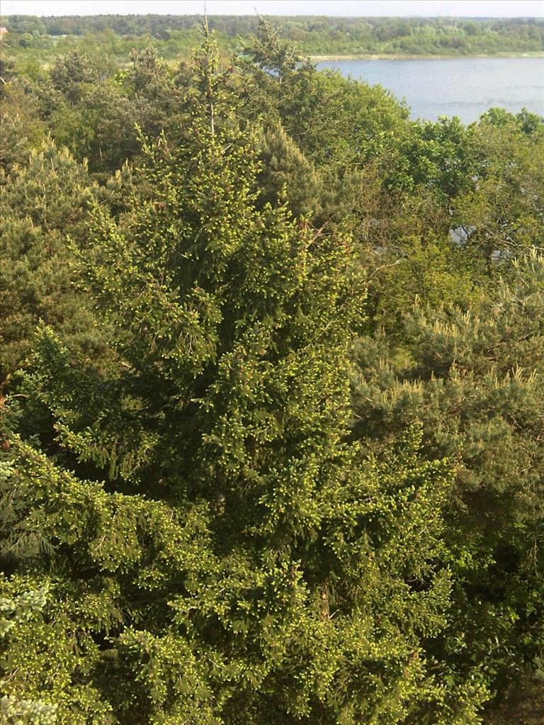 spitse knoppen; onderzijde naalden met 2 witte huidmondstrepen, pinetum, © Hanneke Waller