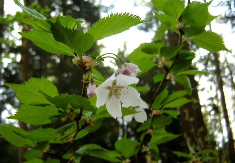 De Fuji-kers is een oorspronkelijk van het Japanse eiland Honsjoe afkomstige kers. Vanwege de vroege en zeer uitbundige bloei is het een geliefde tuinplant. De bloeitijd valt ongeveer samen met die van de Sleedoorn. De eerste gedocumenteerde vondst uit Nederland stamt uit 1972, gevonden in een moerassig elzenbos in de buurt van het natuurreservaat de Hel bij Veenendaal. Alle volgende waarnemingen van verwildering stammen van na 2011. In de omgeving van Wageningen zijn inmiddels op meerdere plaatsen verwilderde exemplaren waargenomen. De meeste groeiplaatsen liggen in bosranden niet ver van de bebouwde kom. Het is aannemelijk dat Fuji-kers door vogels vanuit tuinen verspreid wordt. De Fuji-kers lijkt op de Zoete kers en wordt daarom mogelijk over het hoofd gezien. De gesteelde bloemen staan net als bij de zoete kers in 1-3 bloemige trossen, maar de kroonbladen zijn iets groter, uitgerand aan de top en vooral aan de onderzijde iets rozerood gekleurd. De kelkbladen zijn vergroeid tot een 5-6 mm lange buis, die ongeveer 2x zo lang is als de aanliggende kelkslippen. Bij de Zoete kers zijn de kelkbladen niet tot een buis vergroeid en teruggeslagen. De paarsrode kersjes meten nog geen centimeter in doorsnede en zijn ongeveer half juni rijp. De smaak lijkt op die van Amerikaanse vogelkers. Buiten de bloeitijd is vooral de fraai dubbel-gezaagde bladrand karakteristiek. De 3-5 cm lange bladeren zijn kleiner dan die van de Zoete kers en meestal opvallend lang toegespitst.