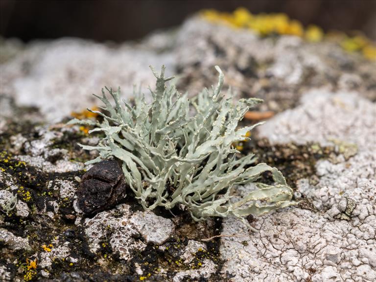 Op graniet. Detail van opengebroken soralen met sorediën, Havenkom West-Terschelling, © Job van Dieten