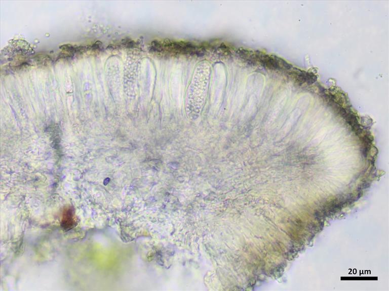 Doorsnede apothecium. Op Alnus, Strijensas, Esscheplaat, © Henk-Jan van der Kolk