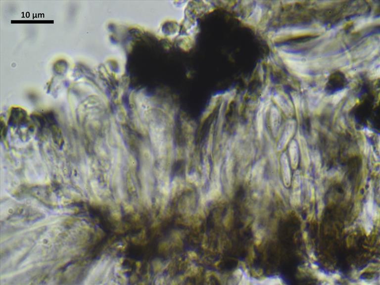 Hymenium met ascus met ascosporen. Op rottend hout van berk, Ede, Zuid Ginkel, © Henk-Jan van der Kolk