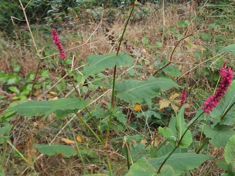 Deze duizendknoop staat op warme en open, zonnige tot licht beschaduwde, droge tot vochtige, matig voedsel- en humusrijke, minerale bodems. De met een houtige, vertakte wortelstok overblijvende plant groeit in tuinen en parken, op grazige en ruige plaatsen, op landgoederen en in boszomen. De soort stamt uit China, Pakistan en de Himalaya, wordt als sierplant gebruikt en is in West-Europa plaatselijk ingeburgerd, met name in Engeland en Ierland. In Nederland is ze verspreid door het land verwilderd aangetroffen. Omdat de in pollen groeiende plant in onze contreien niet tot vruchtzetting komt, en het uitsluitend van vegetatieve vermeerdering moet hebben, gaat het veelal uit opslag uit tuinafval. Het taxon is onmiskenbaar door haar enkelvoudige en eindstandige schijnaren en het feit dat de bovenste bladeren stengelomvattend zijn. Verder hebben de gesteelde en ongevleugelde rozetbladeren een hartvormige bladvoet en een spitse top en tenslotte zijn de lange tuitjes tot aan de basis in tweeën gedeeld.