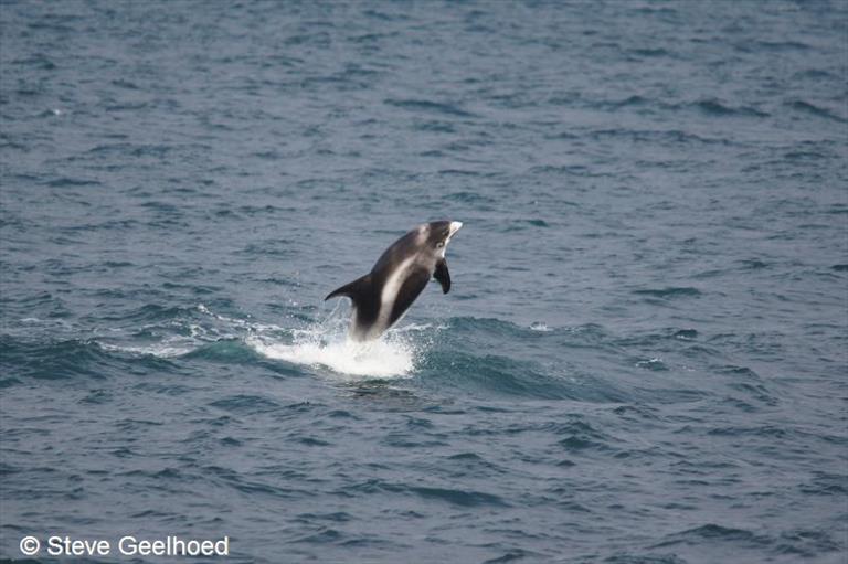De witsnuitdolfijn is een middelgrote, tot 3 m lange, zwaargebouwde dolfijn met een korte snuit. Afhankelijk van het licht lijkt hij grijs-wit of zwart-wit. De hoge, sterk gebogen rugvin is zwartachtig, net als de rug daaronder en daarvoor. Achter de rugvin bevindt zich een kenmerkend grijswit zadel. De flanken zijn bont: het voorste deel is zwart, de grijswitte baan er boven loopt van voor de rugvin naar achteren en gaat over in het grijswitte zadel en de witte buik. Achter het blaasgat zit vaak een lichte vlek, en er is een lichte oogring. Snuit en kin zijn wit of (gedeeltelijk) grijs. De borstvinnen zijn meestal zwart, evenals de staart, vaak met een fijne, witte vlektekening. Door dit opvallende zwart-wit-patroon en de hoge rugvin worden de dieren wel eens voor orka’s aangezien. Witsnuitdolfijnen zwemmen graag even voor de boeg van schepen. Kenmerkend zijn de hoge, bijna verticale sprongen, waarbij ze met een plons in het water terugvallen. Ze leven meestal in kleine groepjes, maar kunnen zich verenigen tot scholen van honderden dieren, soms geassocieerd met witflankdolfijnen.